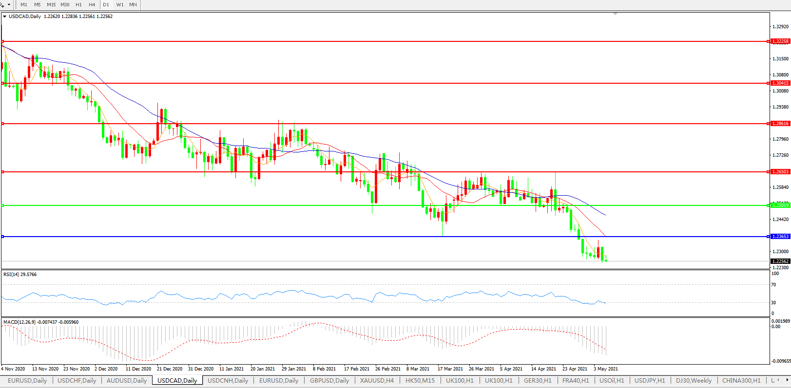 美元兑加元USDCAD 日线图: