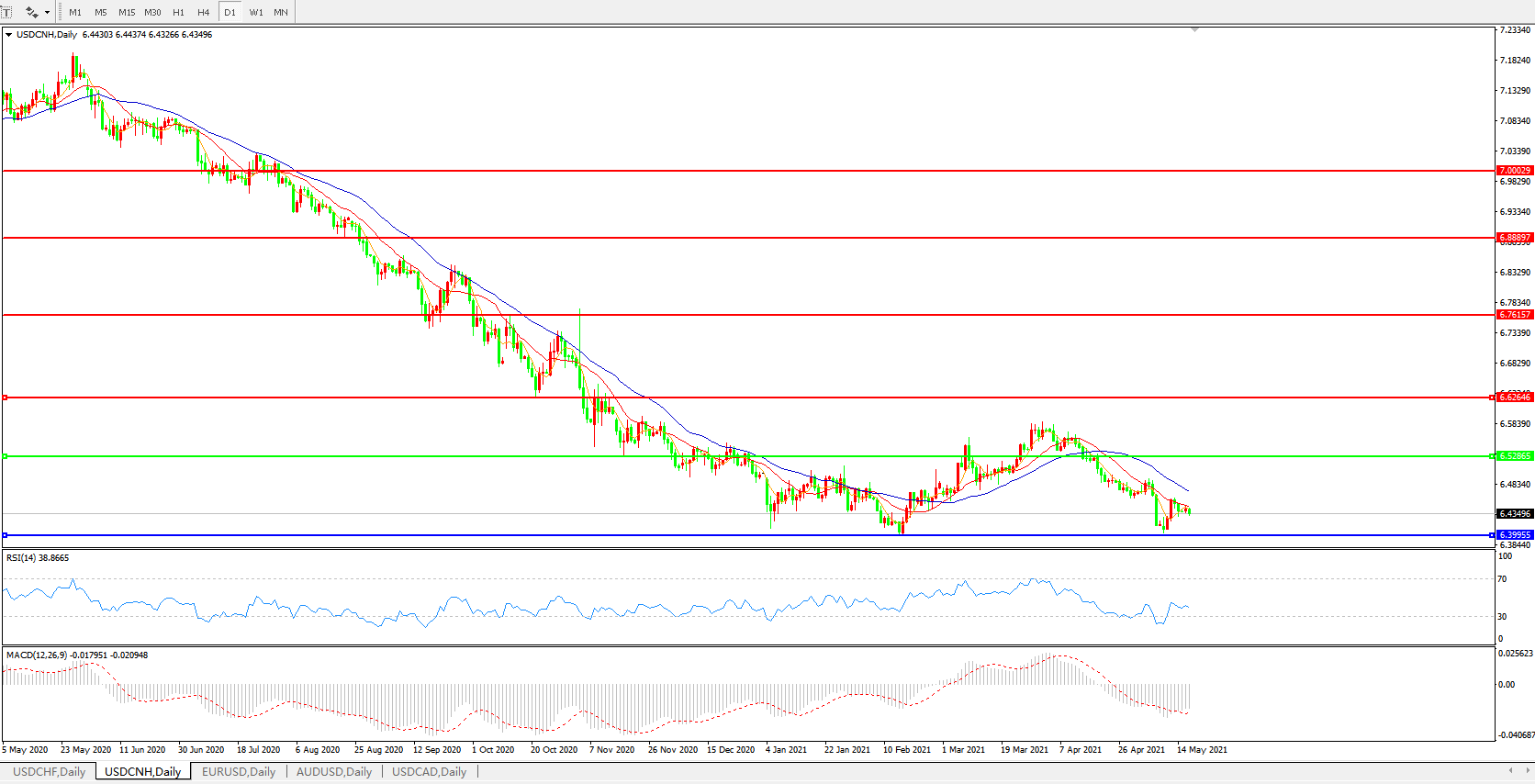 美元兑离岸人民币上周在跌触6.40关键支撑位后反弹,本周一,人民币汇价在中国4月宏观经济数据表现略不及预期的背景下仍然承压,但业内机构大华银行指出,鉴于美元指数表现同样受到美国相对逊色的经济数据压制,美元兑人民币汇价短线并无太多进一步回升的空间;该行指出,短线来看,6.4650处已是美元兑离岸人民币短线反弹的强阻力水平,即使升破,在6.48关口下还会遇到更强的阻力,而之后汇价一旦受美元弱势再续的带动重新失守6.42关口,那么自4月初以来的下行趋势就将再续,并重新对6.40心理底部关口发起冲击