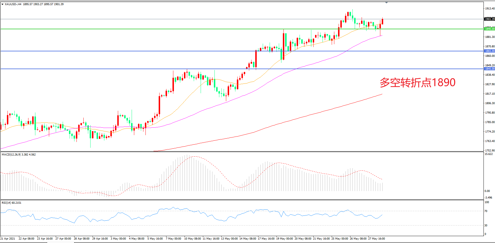 交易策略:在1890.00之上看涨,目标1910.00 1935.00