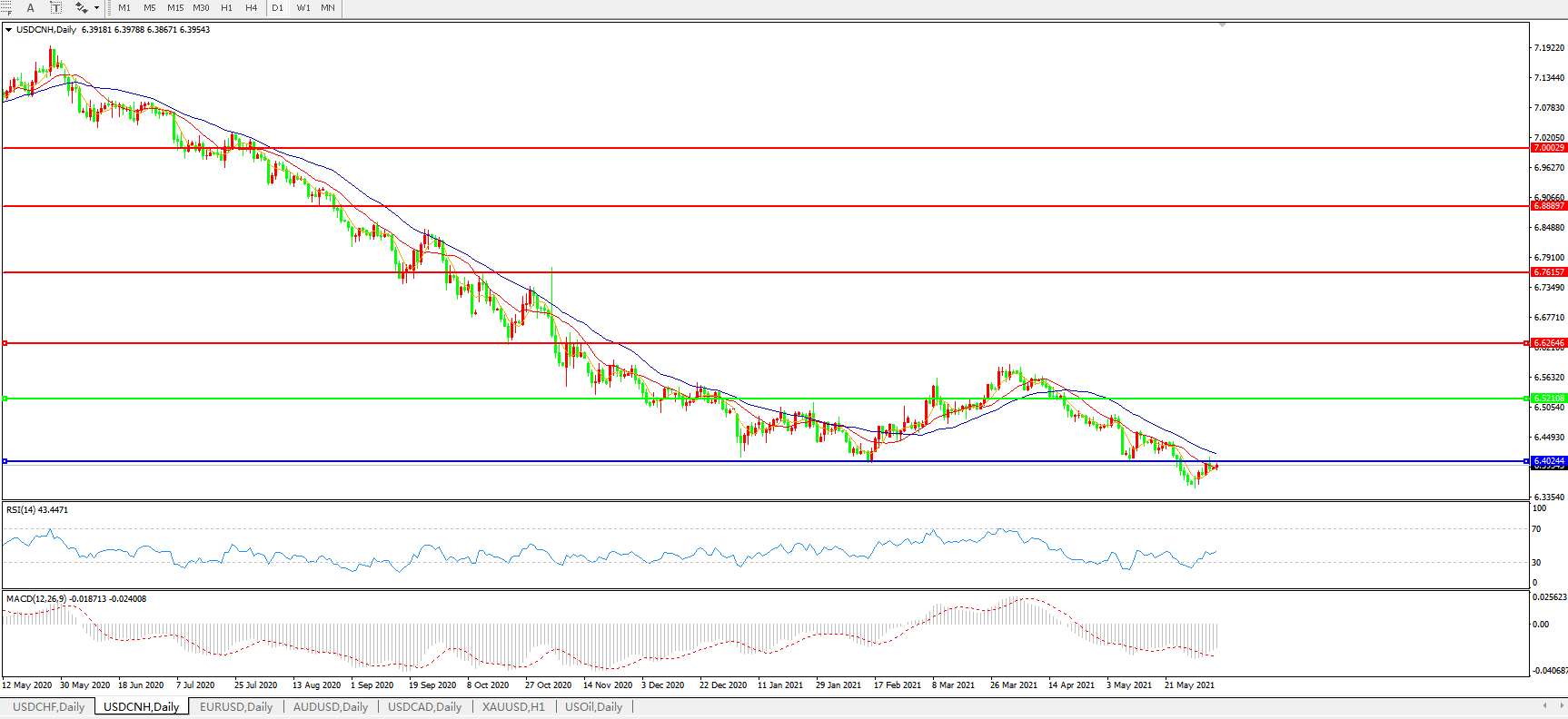 美元兑人民币USDCNH    日线图:
