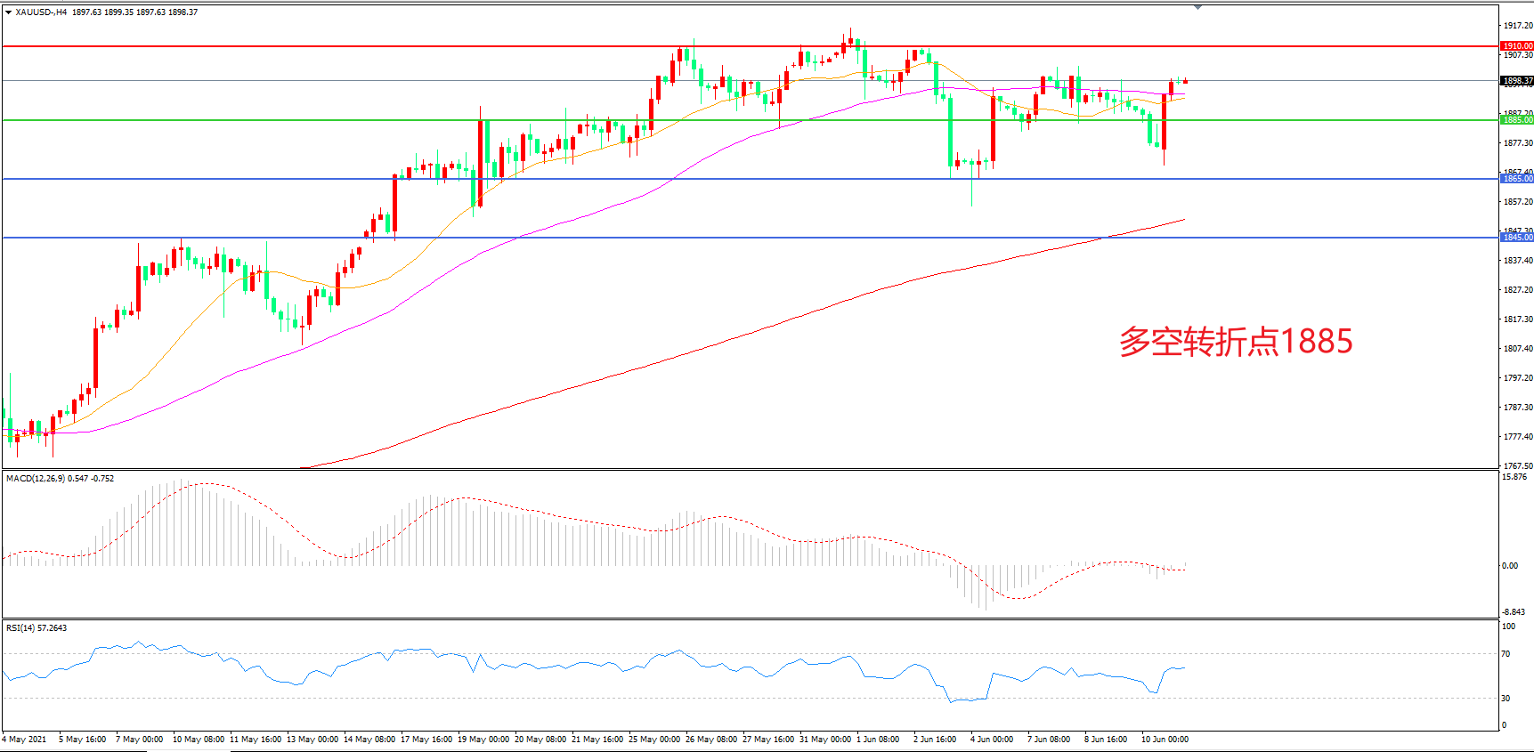 交易策略:在1885.00之上看涨,目标1910.00 1935.00