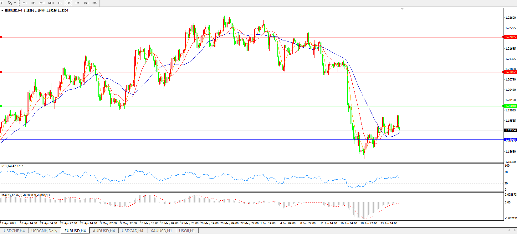 欧元兑美元EURUSD 4小时图: