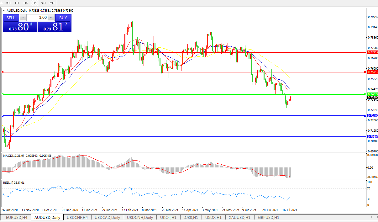 交易策略:0.7400下方看跌,目标0.7240、0.7080