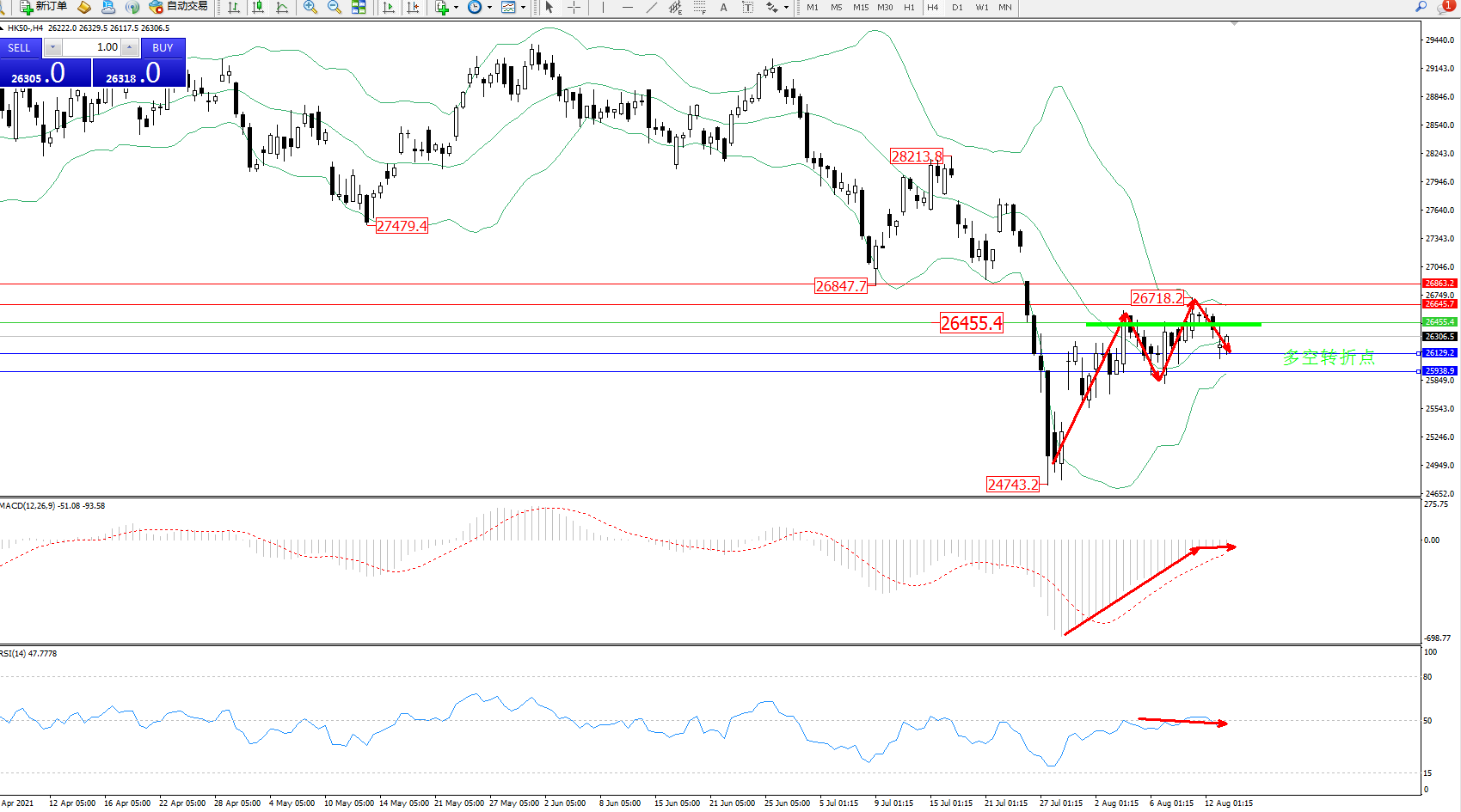 恒指HK50 ——4小时K线图显示:
