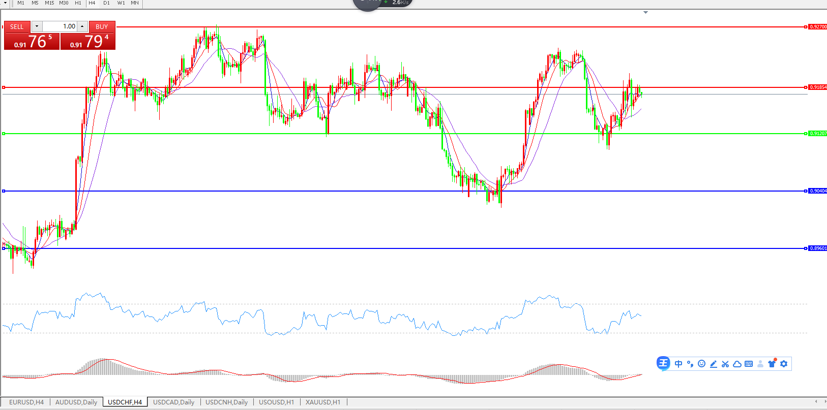 美元兑瑞郎USDCHF    4小时图: