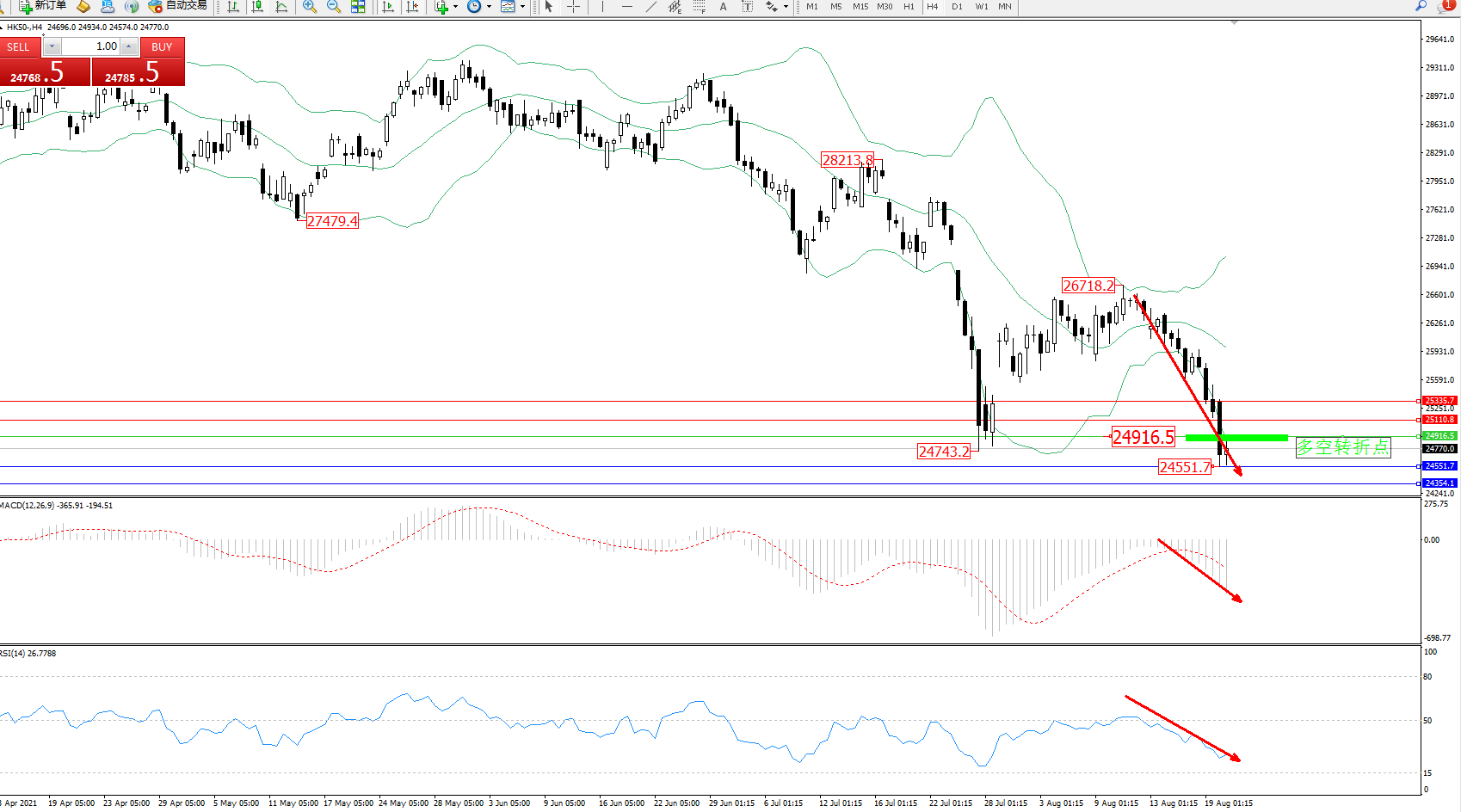 恒指HK50 ——4小时K线图显示: