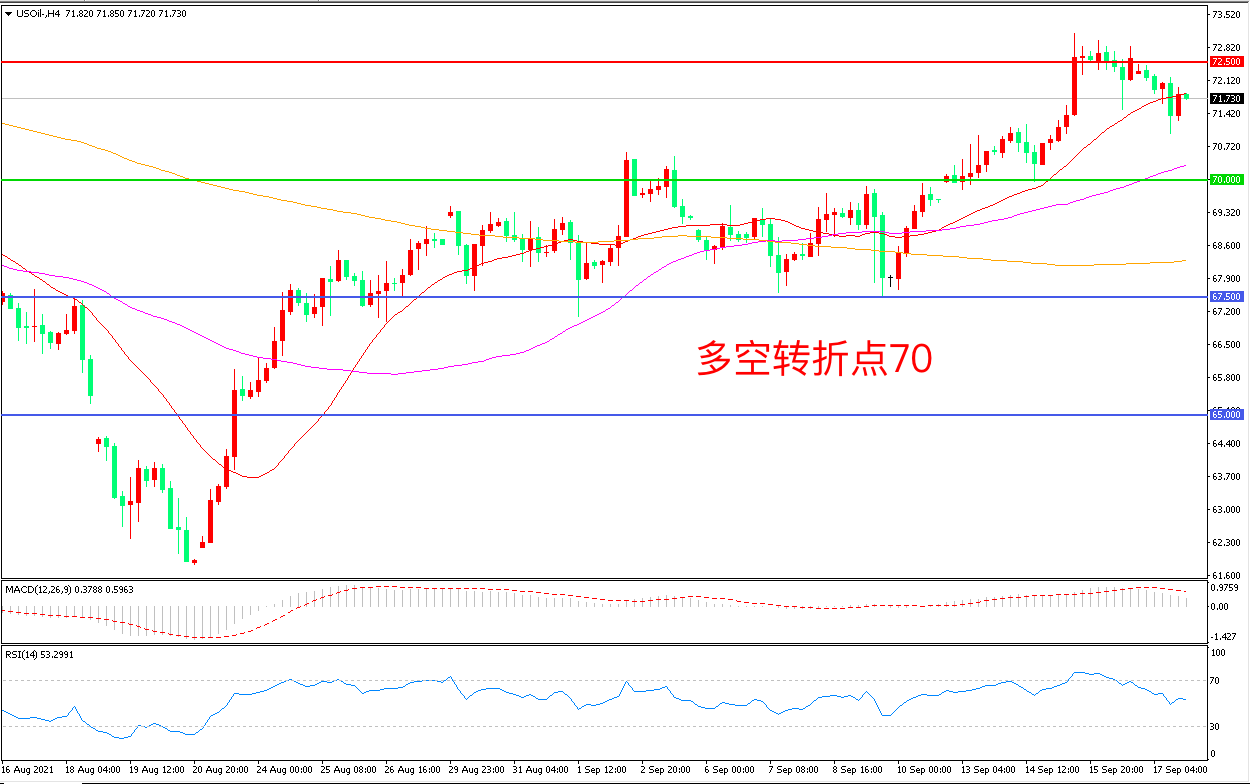 交易策略:在70.00之上看涨,目标72.50 75.00