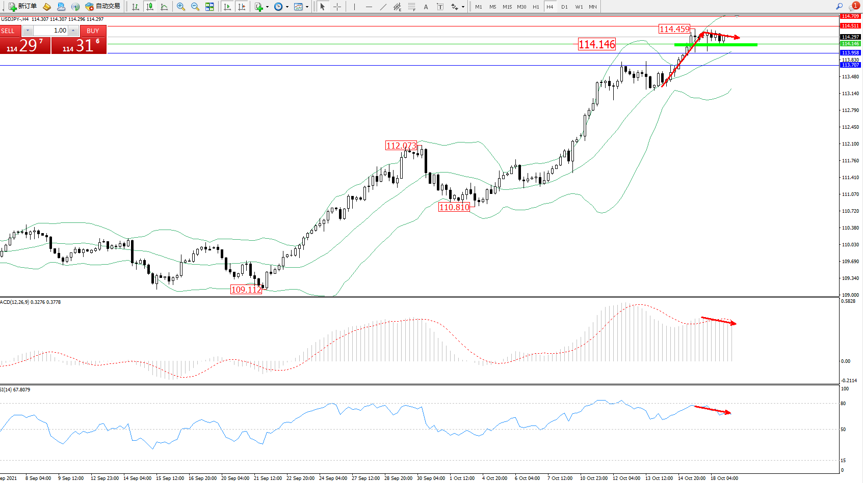 交易策略:114.146上方看涨,目标114.511、114.709