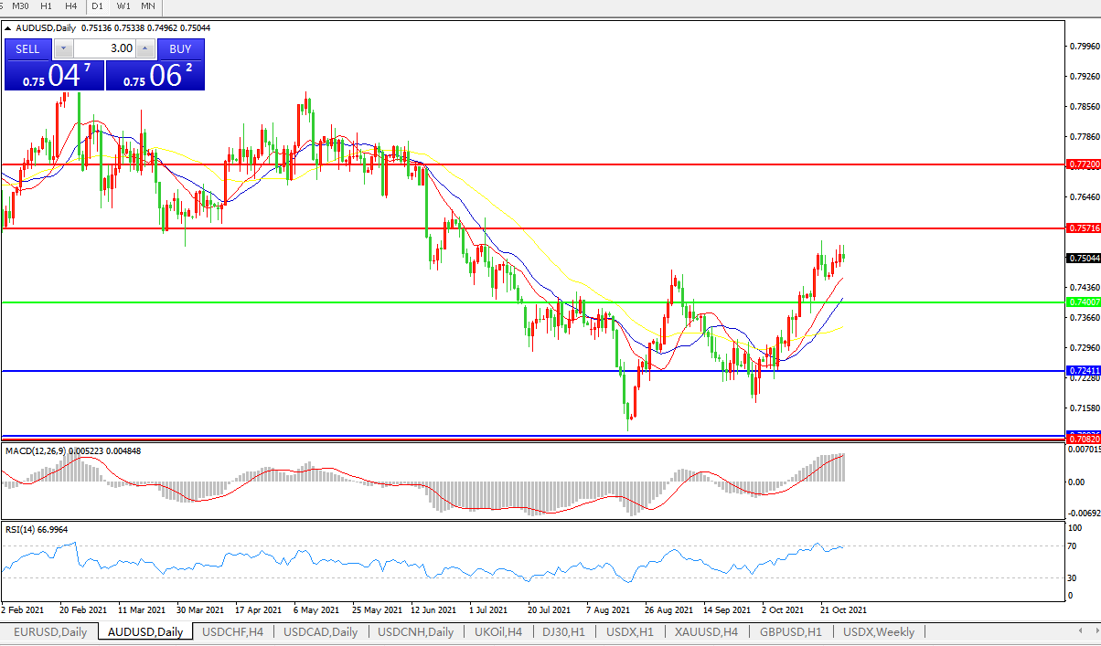 交易策略:0.7400上方看涨,目标0.7570、0.7720