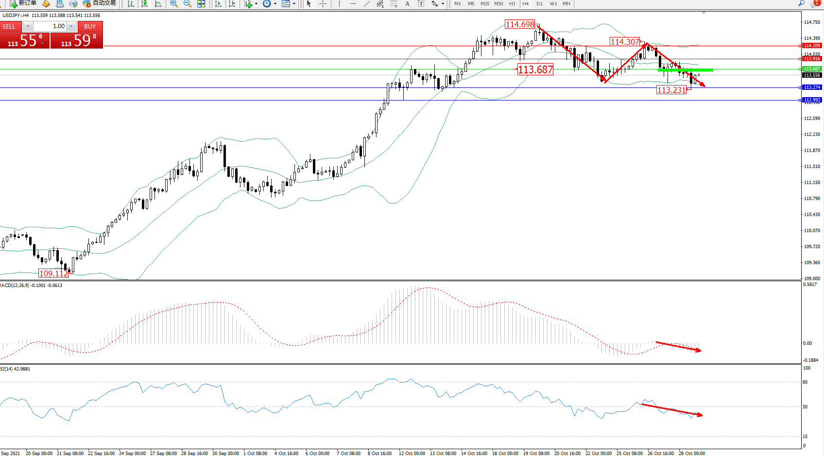 交易策略:113.687下方看跌,目标113.274、112.992