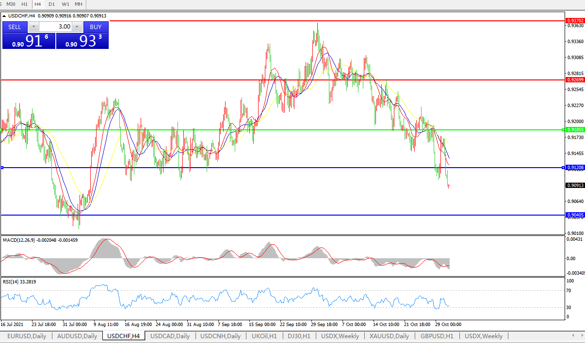 美元兑瑞郎USDCHF 4小时图: