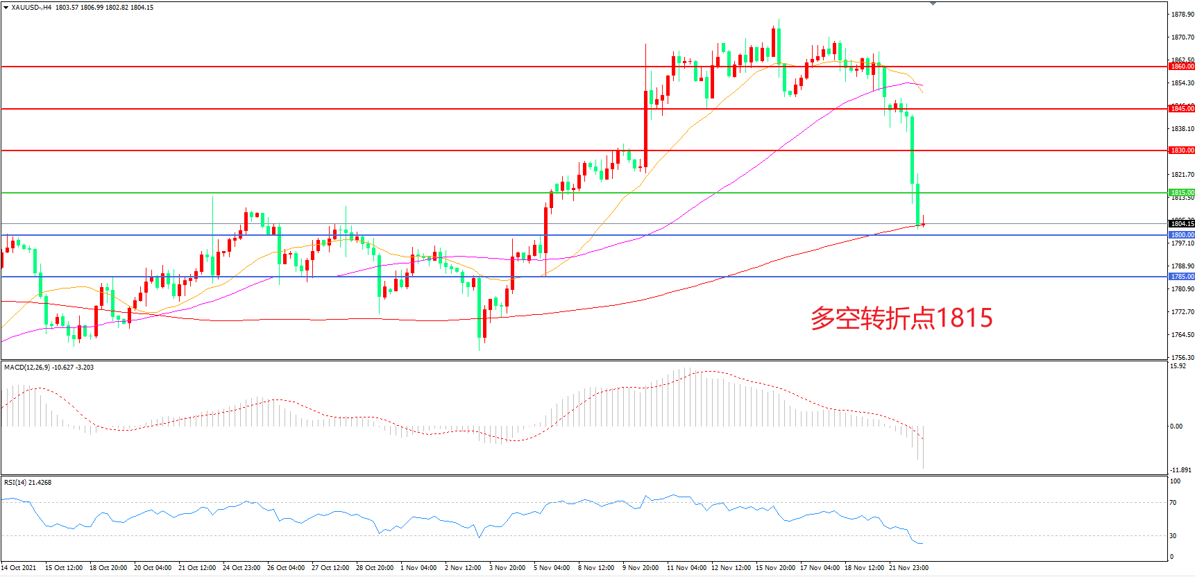 交易策略:在1815.00之下看跌,目标1800.00       1785.00