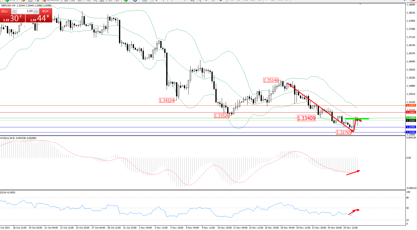 交易策略:1.33409下方看跌,目标1.32991、1.32765
