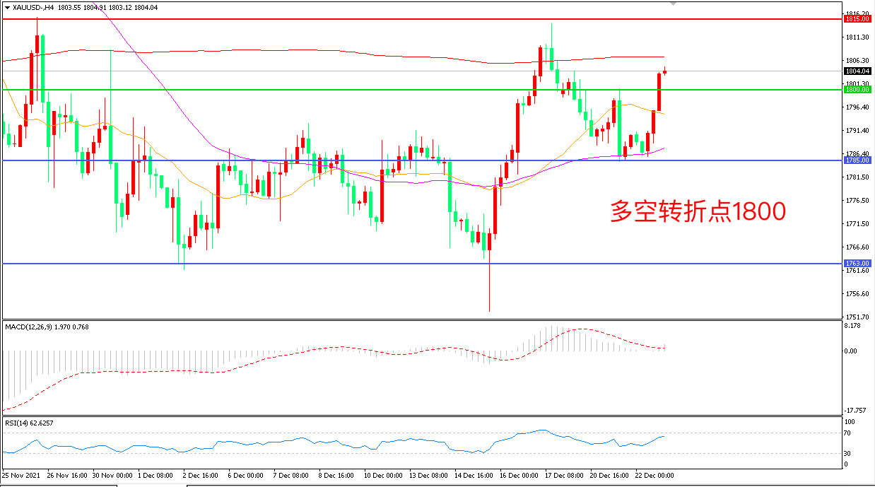 交易策略:在1800.00之上看涨,目标1815.00 1830.00