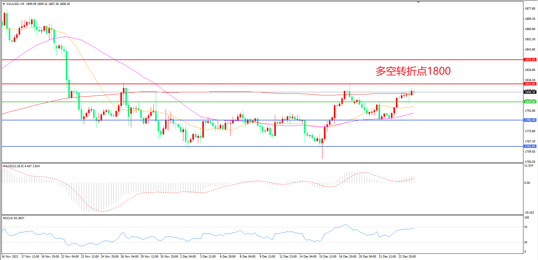 交易策略:在1800.00之上看涨,目标1815.00       1830.00