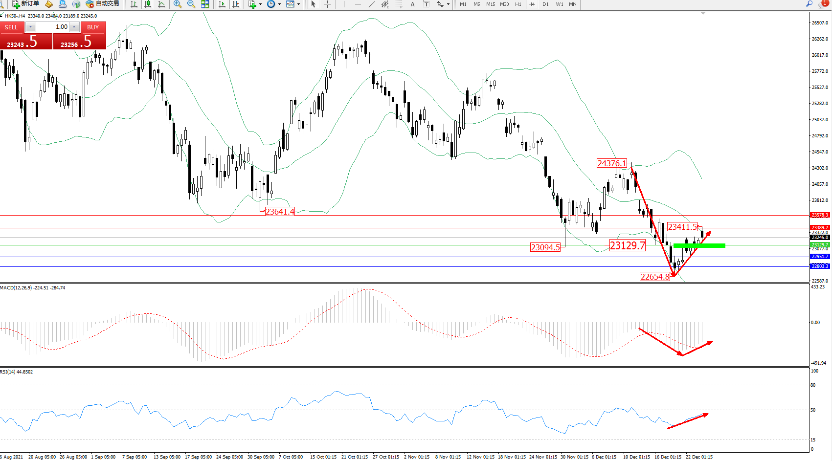 恒指HK50 ——4小时K线图显示: