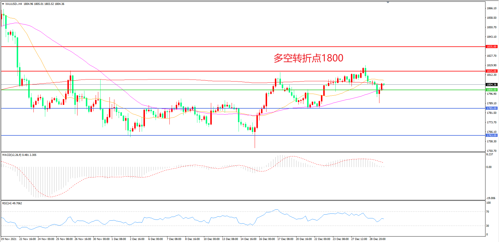 交易策略:在1800.00之上看涨,目标1815.00 1830.00