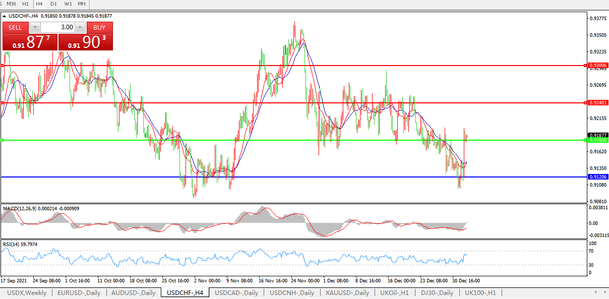 交易策略:0.9180上方看涨,目标0.9270、0.9370