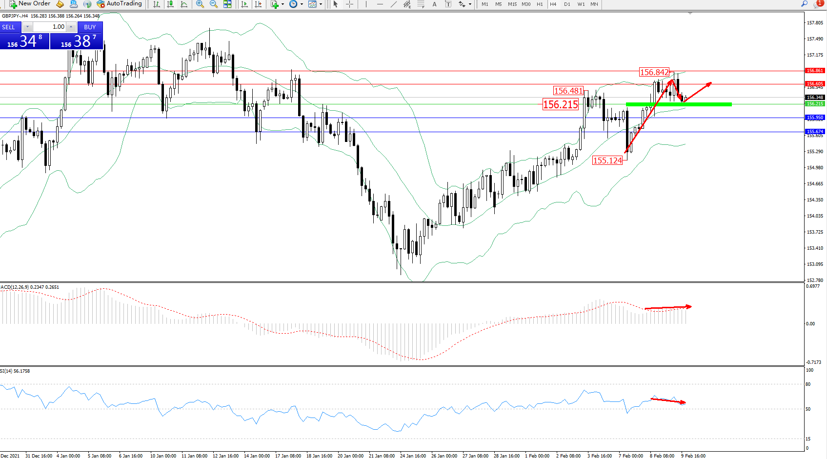 交易策略:156.215上方看涨,目标156.605、156.861