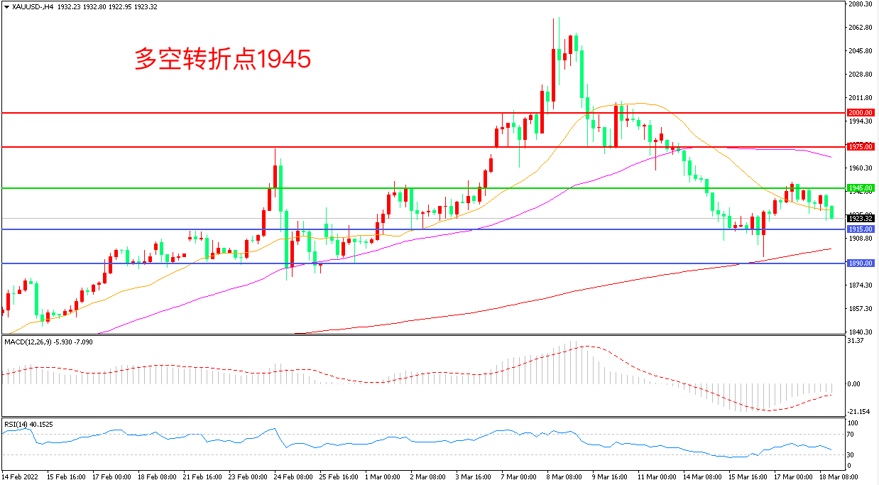 交易策略:在1915.00之上看涨,目标1945.00 1975.00
