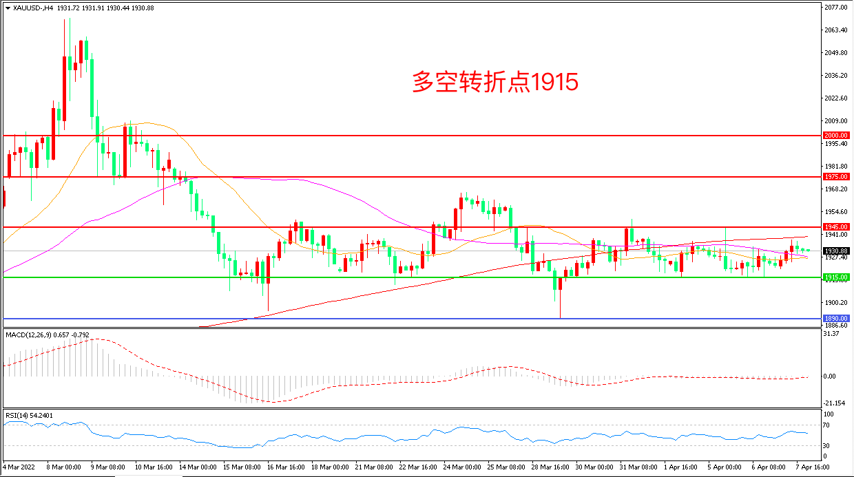 周四(4月7日),美联储鹰派信号的推动下美元大幅上涨,但乌克兰东部再度爆发大战激发了市场避险情绪,现货黄金延续震荡形态,收报1931.54美元/盎司。根据世界黄金协会发布的最新报告显示,俄乌冲突引发的地缘政治不确定性和日益加剧的通胀威胁支撑着黄金ETF获得源源不断的资金流入,在经历寻底过程后,金价可能再度迎来反弹。
