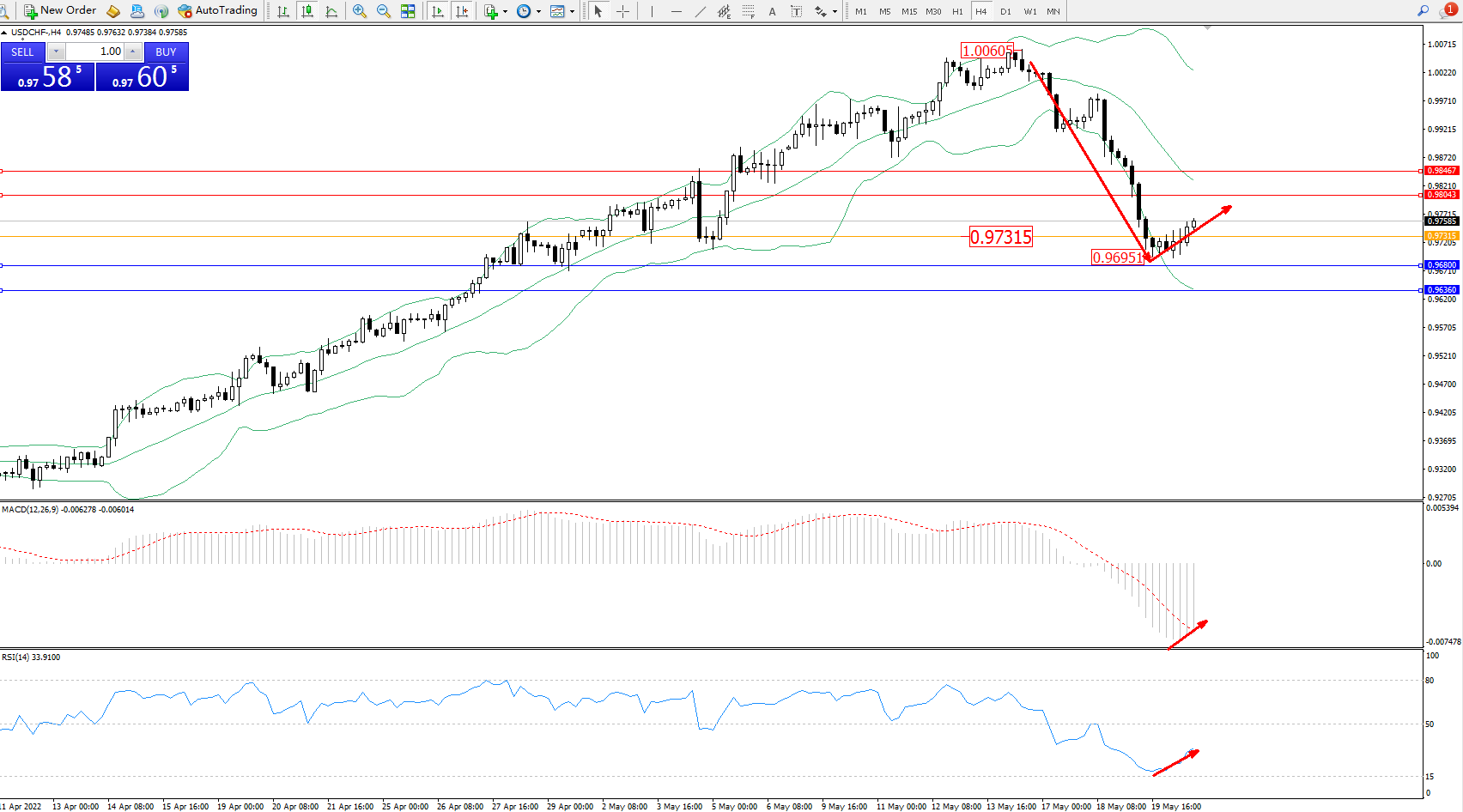 美元瑞郎USDCHF——4小时K线图显示: