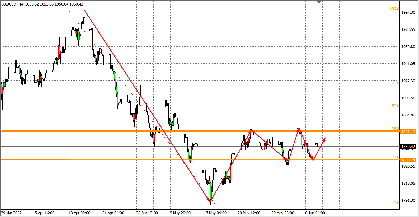 现货黄金XAU 4小时图