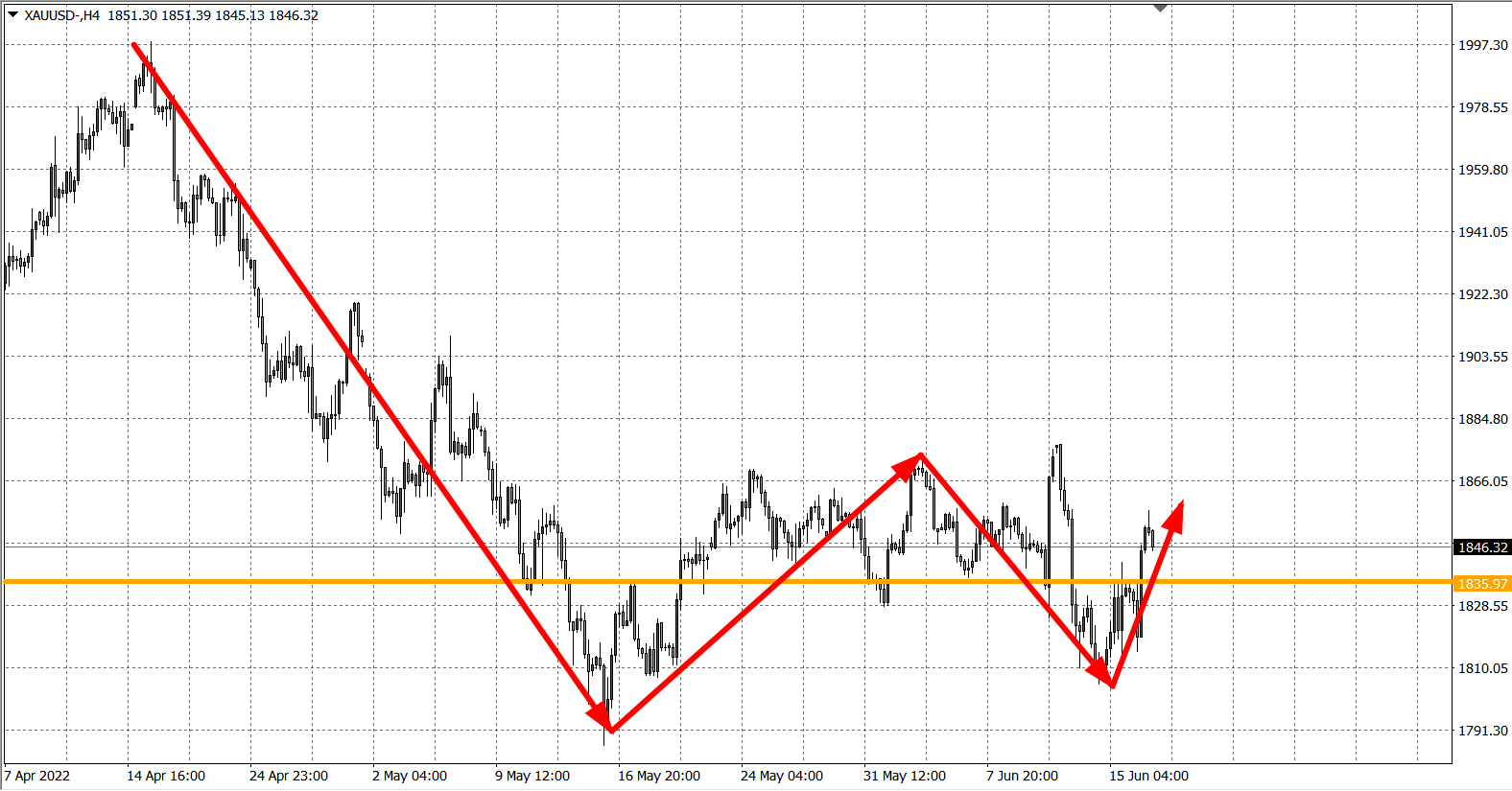 现货黄金XAUUSD 4小时图