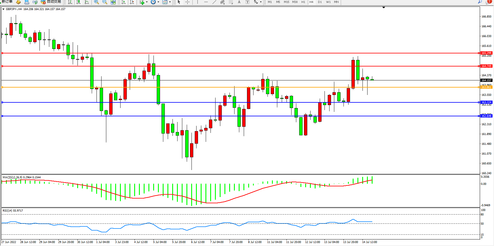 交易策略:163.861上方看涨,目标164.749、165.299