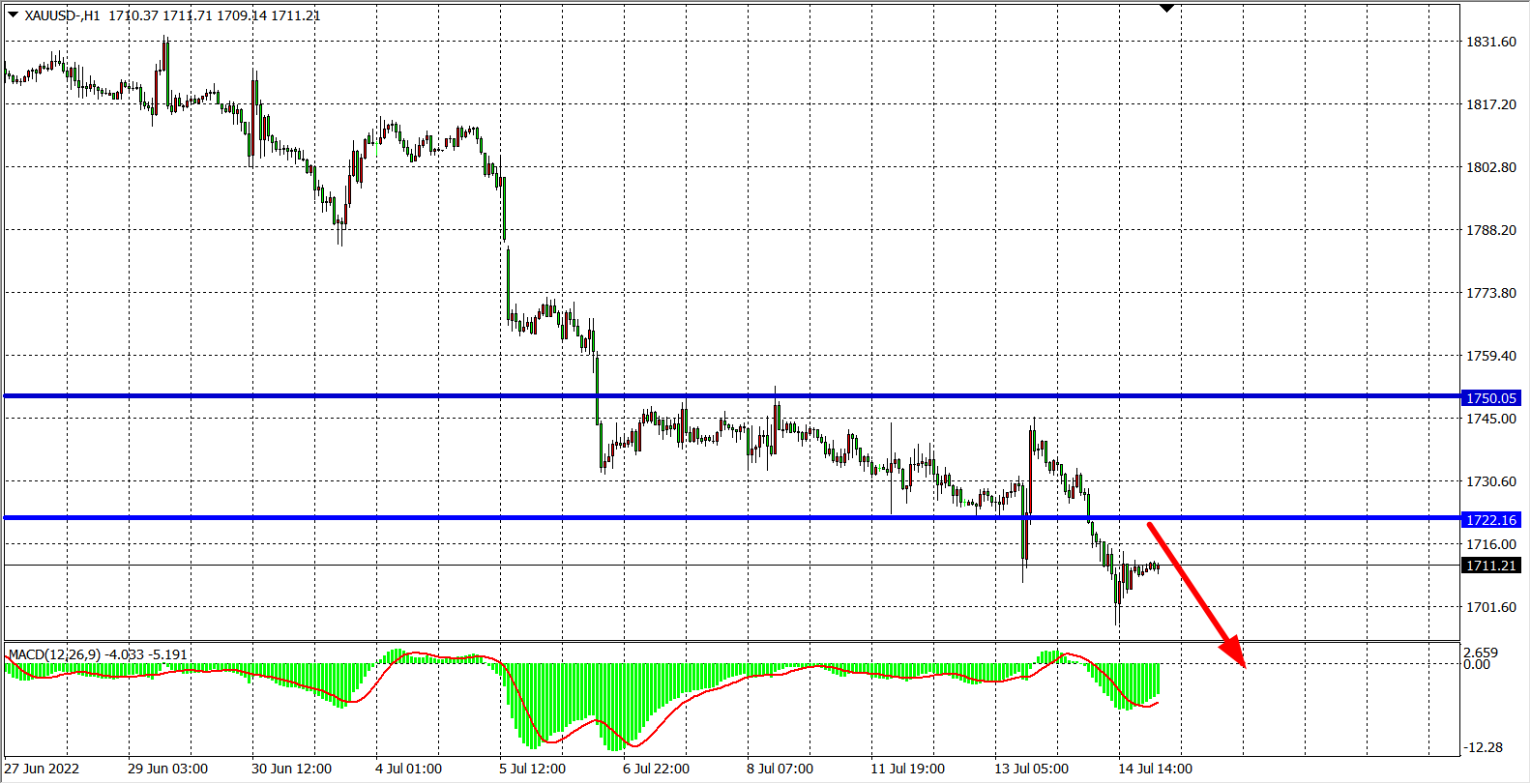 交易策略:在1722.00之下看跌,目标1690.00          1670.00