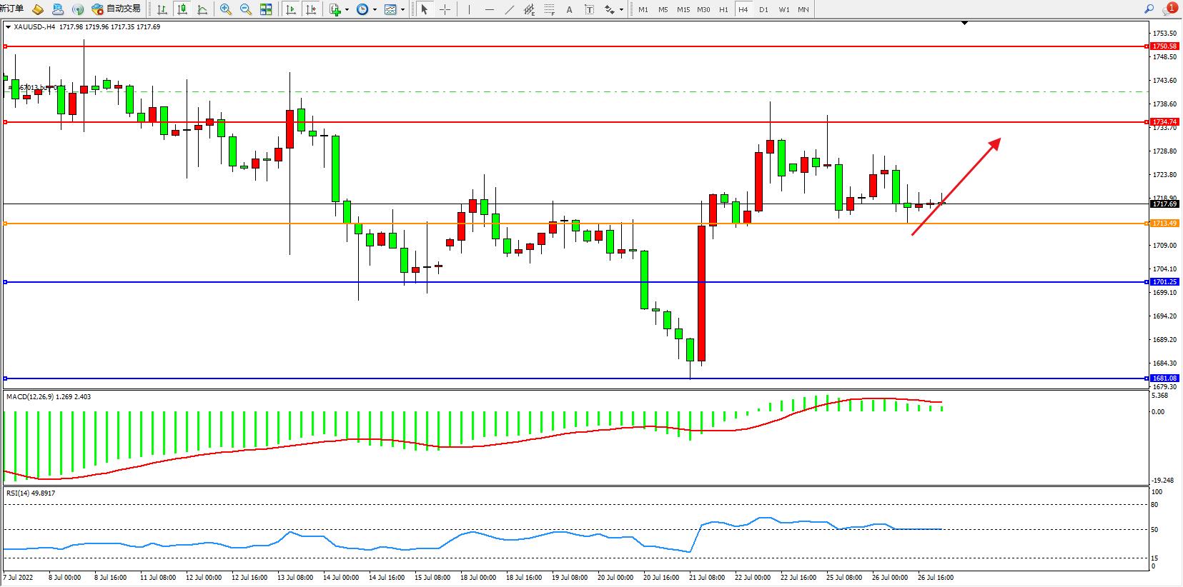 备选策略:在1713.00之上看涨,目标1735.00 1750.00
