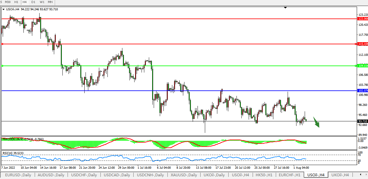美国原油USOil 4小时图