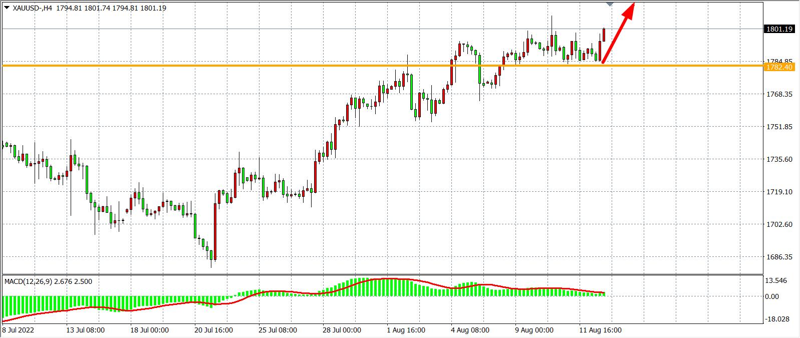 交易策略:在1782.00之上看涨,目标1800.00           1820.00