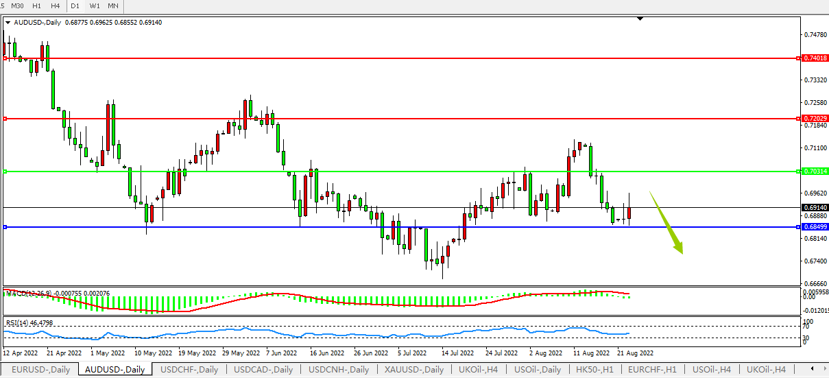 交易策略:0.7030下方看跌,目标0.6850、0.6700