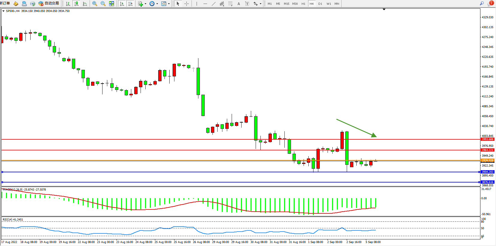 标普SP500——4小时K线图显示: