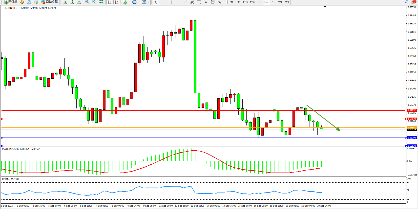 交易策略:0.66901下方看跌,目标0.66700、0.66530