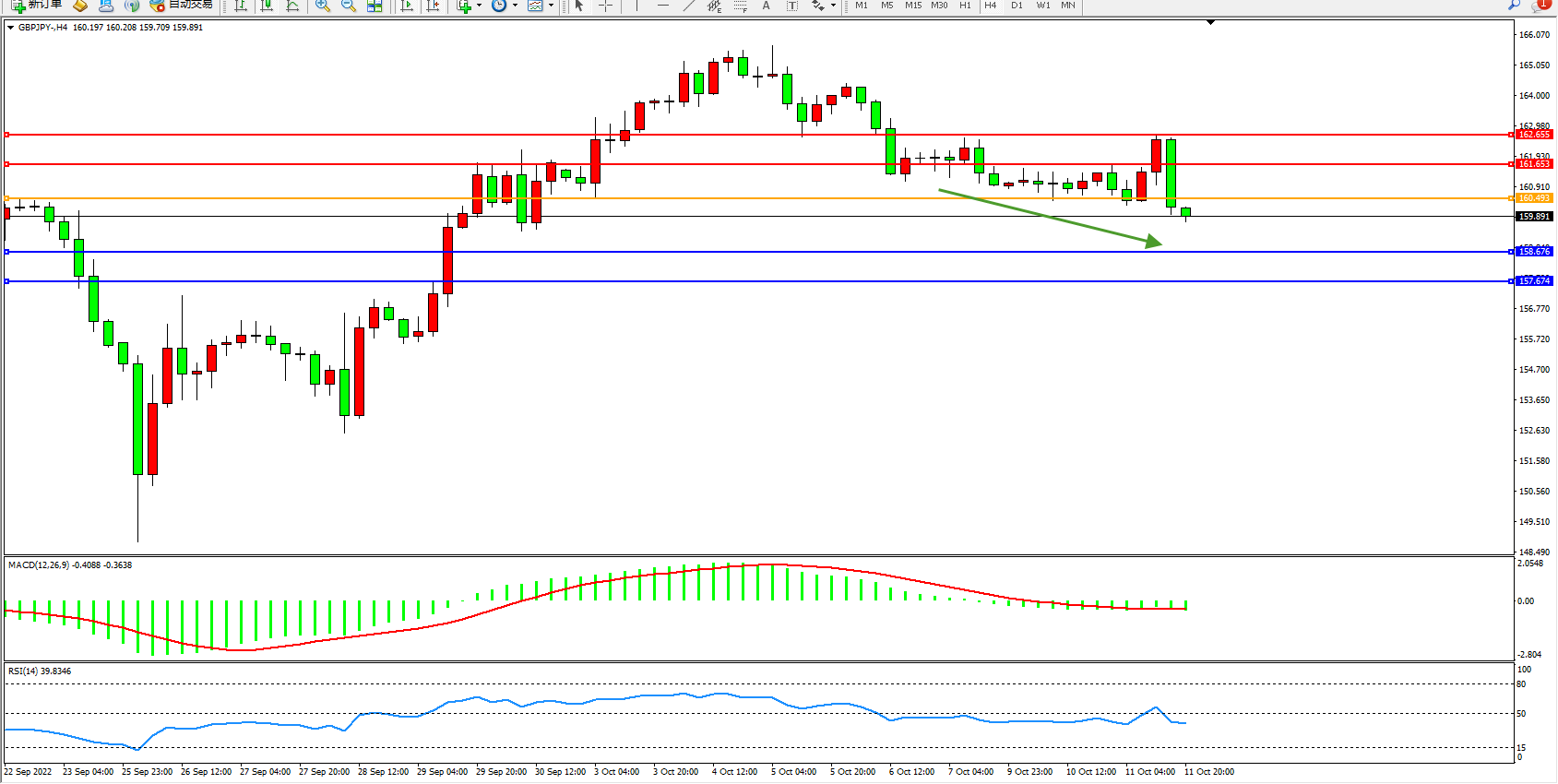 交易策略:160.493下方看跌,目标158.676、157.674