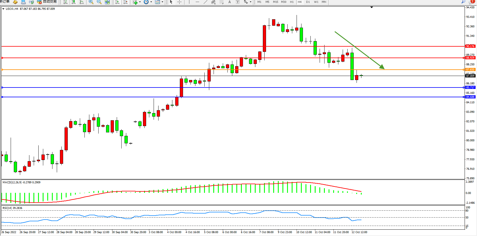 原油USOil——4小时K线图显示: