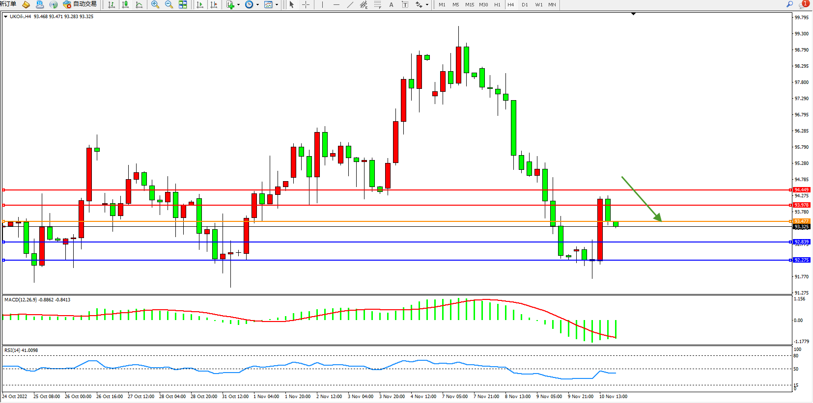 布油UKOil——4小时K线图显示: