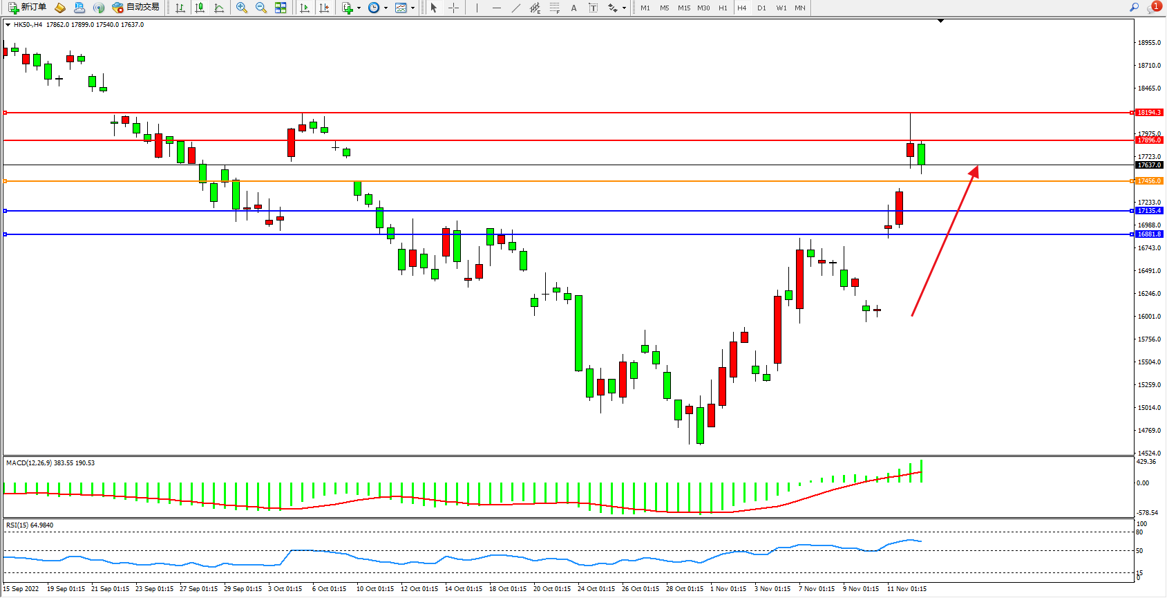 恒指HK50 4小时图