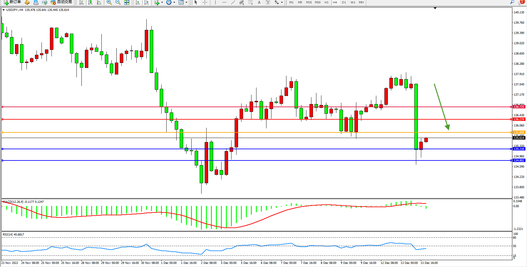 交易策略:135.808下方看跌,目标135.216、134.802