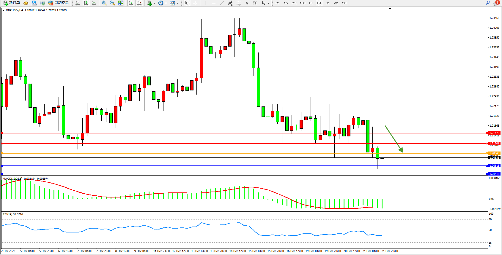 英镑美元GBPUSD ——4小时K线图显示:
