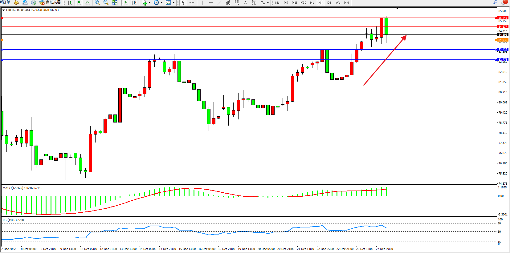 布油UKOil——4小时K线图显示: