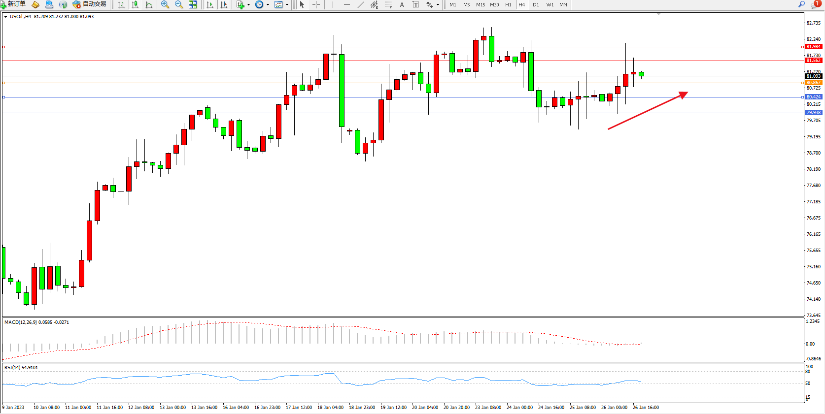 原油USOil——4小时K线图显示: