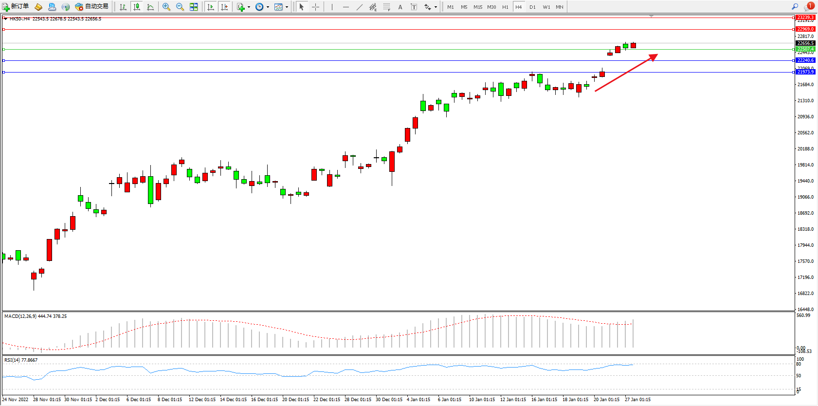 恒指HK50 4小时图