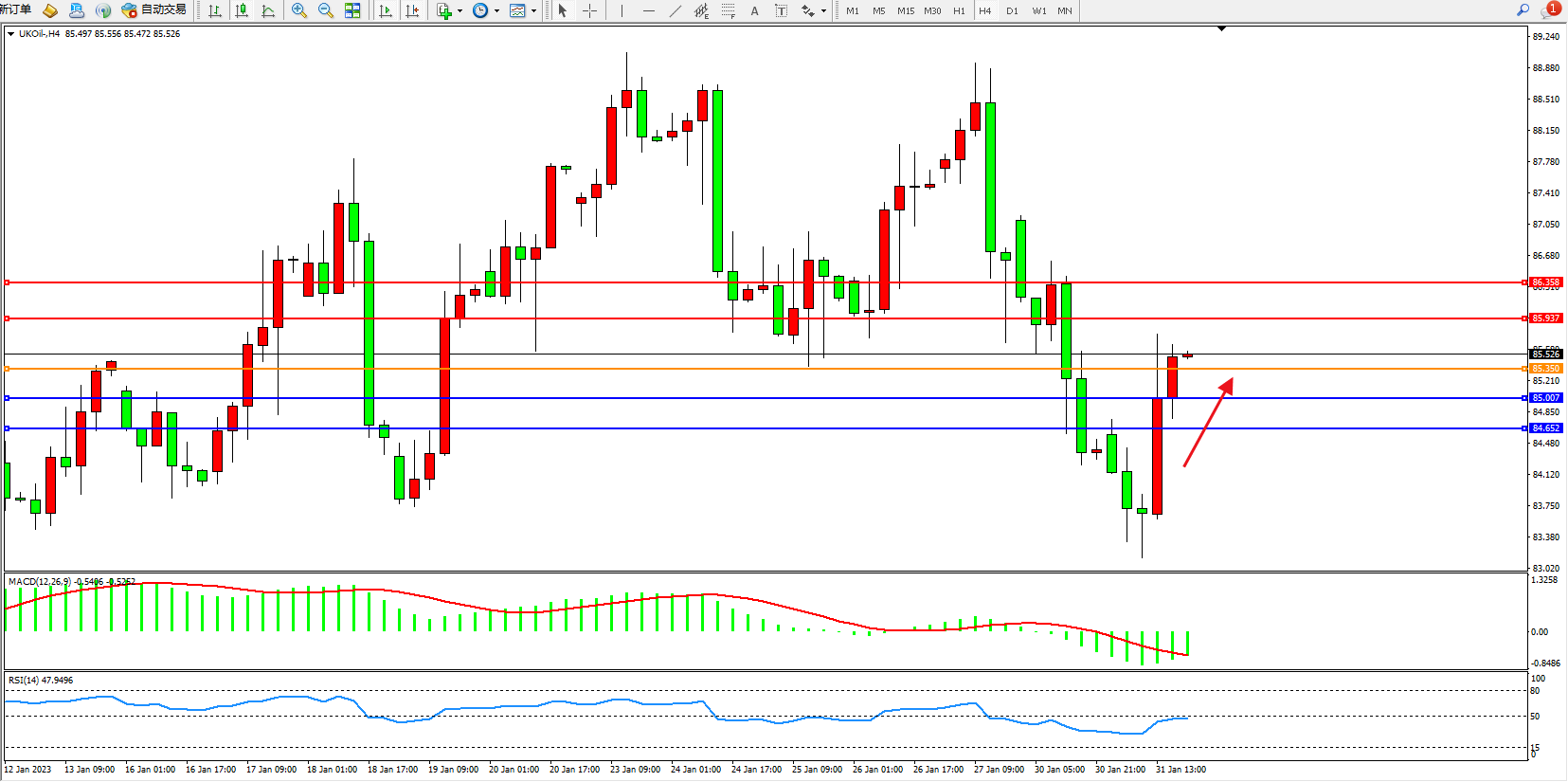 布油UKOil——4小时K线图显示: