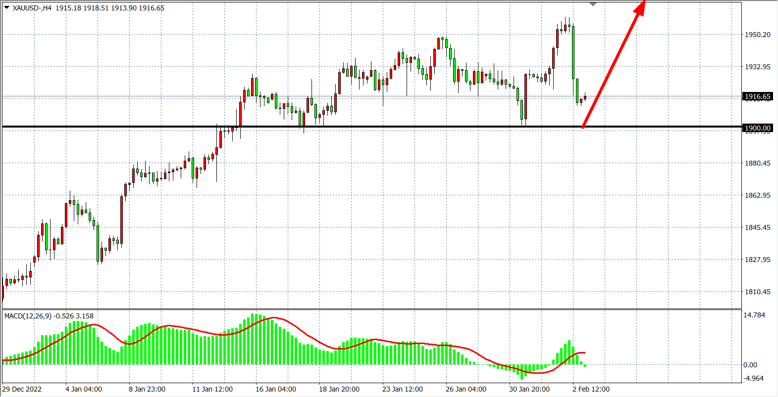 备选策略:在1900.00 之下看跌,目标1880.00 1860.00