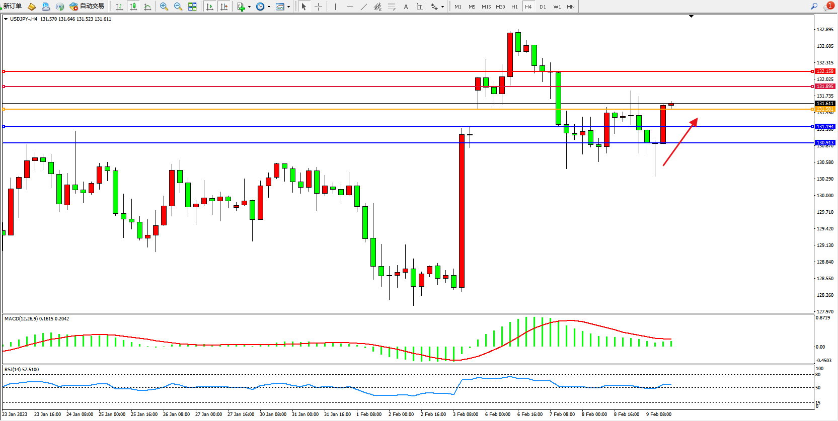 美元兑日圆维持131.611附近震荡,日本5年期国债收益率升至0.20%,为1月27日以来最高水平。日本至2月3日当周买进外国债券 11275亿日元,前值-7154亿日元。