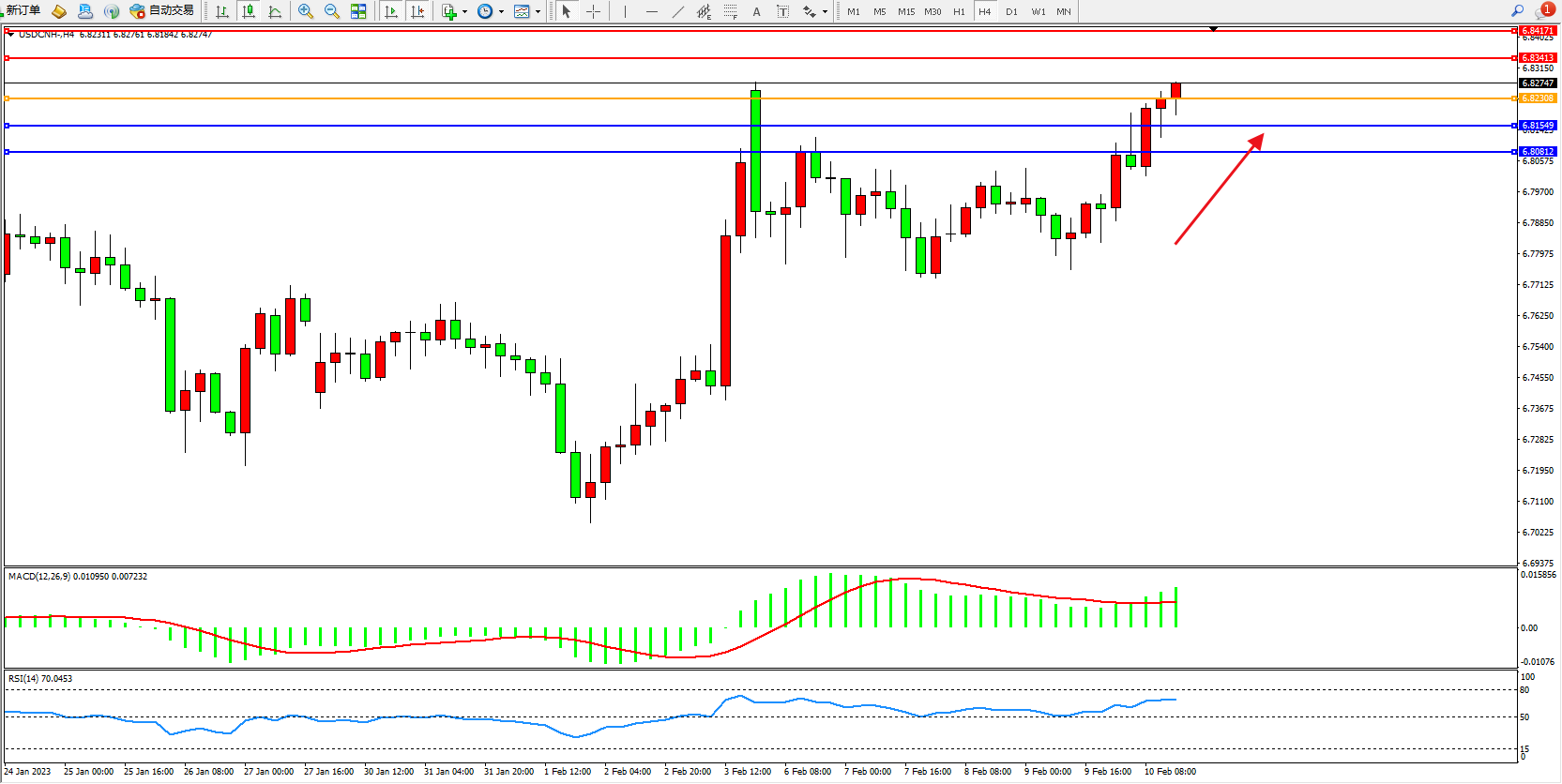 交易策略:6.82308上方看涨,目标6.83413、6.84171