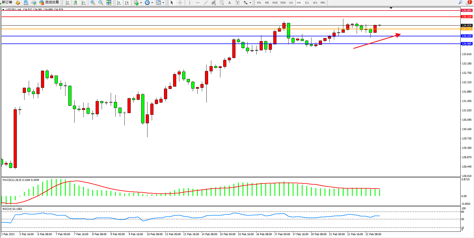交易策略:134.751上方看涨,目标135.319、135.603